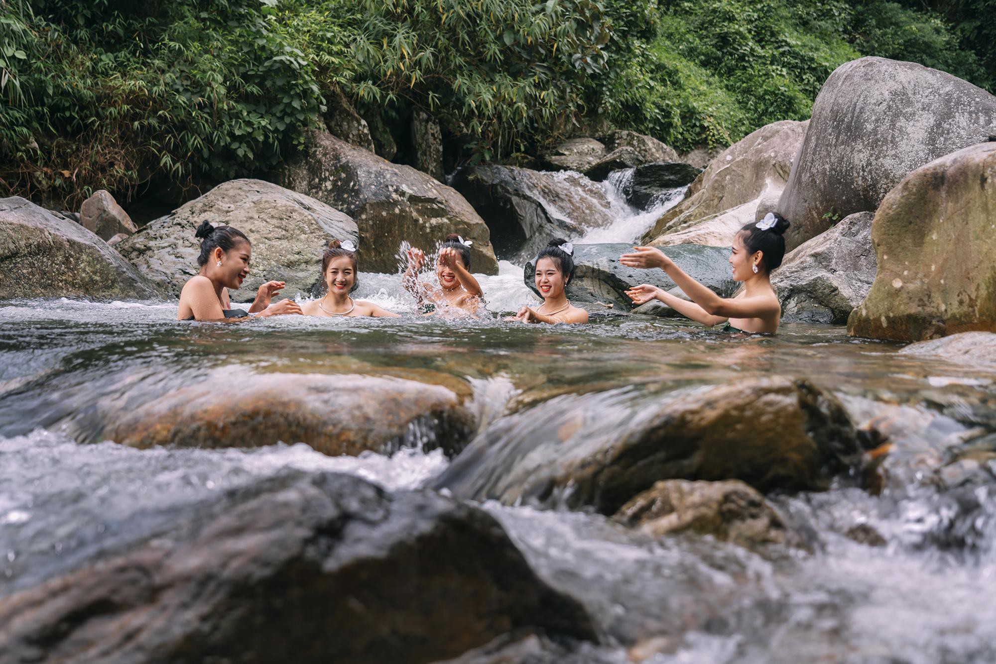 Một trong những trải nghiệm nhất định phải thử khi đến Tú Lệ là tắm tiên tại suối khoáng nóng xã Tú Lệ. Bể tắm rộng, ngập nước ấm khoảng 35 độ C. Đây cũng là nơi các cô gái Thái và người dân trong bản thư giãn sau một ngày lao động vất vả.