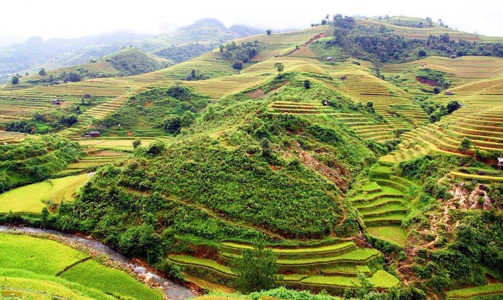 Từ thị trấn Mù Cang Chải về xã La Pán Tẩn khoảng 15km, du khách đi theo hướng Đông Bắc là dễ dàng đến nơi, cũng rất phù hợp đi trong ngày nên du khách không cần quá lo lắng khi nghỉ tại Mù Cang Chải. Sau hành trình băng qua những cung đường đèo sát sườn núi, bạn sẽ đến với một miền đất xinh đẹp có đến 2200 ha diện tích ruộng bậc thang xếp thành tầng tầng lớp lớp. Thời gian đẹp nhất lên xã La Pán Tẩn là vào tầm tháng 9 tháng 10 hàng năm. Đẹp nhất bởi những thửa ruộng bậc thang tại đây đang trong giai đoạn chín vàng rực rỡ nhất và đẹp nhất trong năm. Dọc đường lên tới xã rất đẹp, thời tiết thì ủng hộ có ít cơn mưa, trời nắng nhiệt độ mát mẻ phù hợp với những hoạt động ngoài trời. Mùa nước đổ tại đây cũng đẹp không hề thua kém những tháng cao điểm 9 – 10 hàng năm. Lúc này đồng bào đang bắt đầu vụ cấy nên nước được kéo về những thửa ruộng cao, nước đổ khắp nơi tạo nên khung cảnh tráng gương đặc sắc.